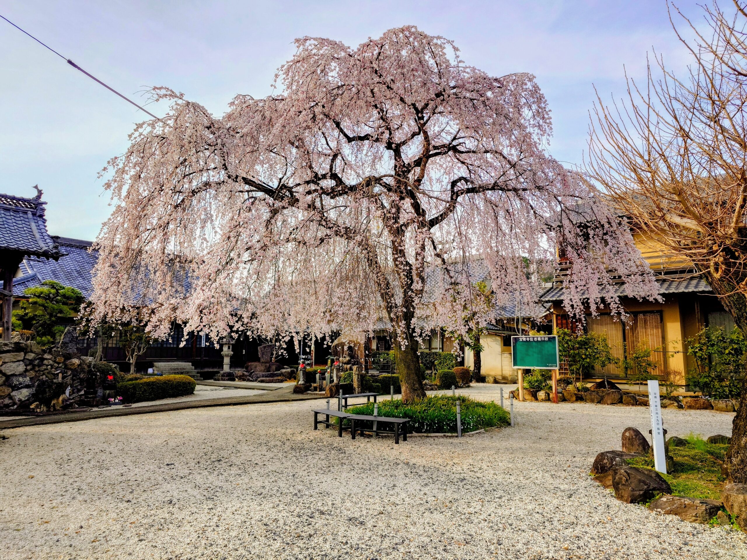 夫婦桜と言われ、100年以上の歴史をもつ枝垂れ桜で有名です。